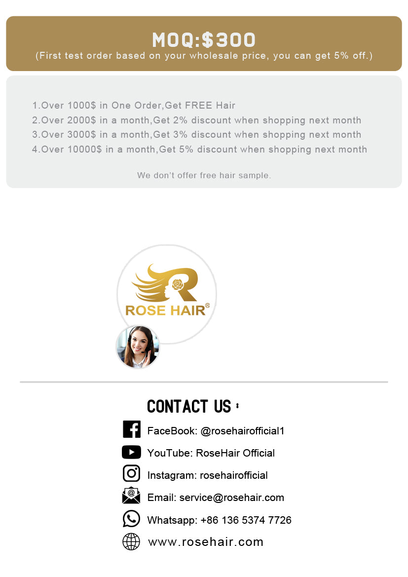Want to details of wholesale, please send an email to : service@rosehair.com, WhatsApp: +86 136 5374 7726