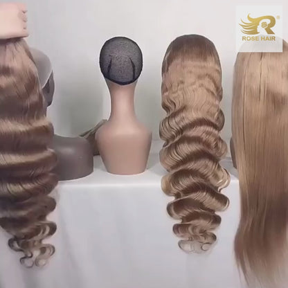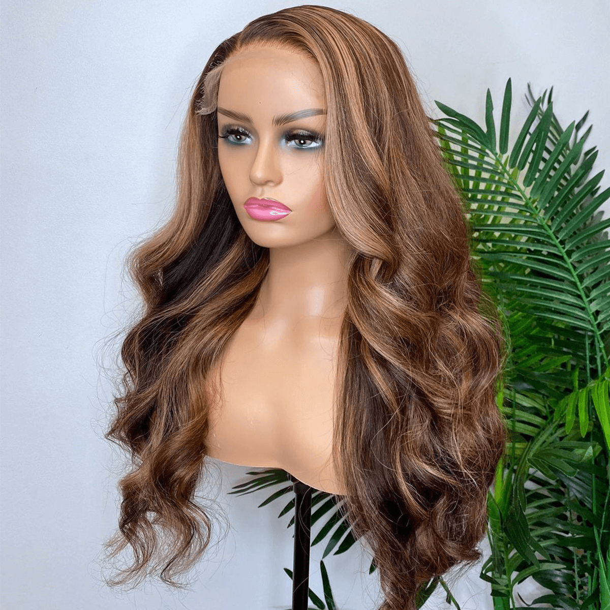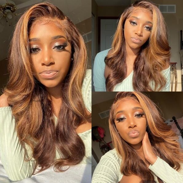 #4/27 Honey Blonde Lace Frontal Wigs Body Wave Glueless 5×5 Lace Closure Wig Colored Human Hair Lace Wig