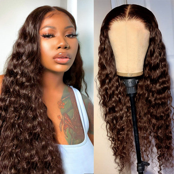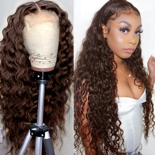 #4 Chocolate Brown Wigs Human Hair Loose Deep Wave Lace Front Wigs Rose Hair